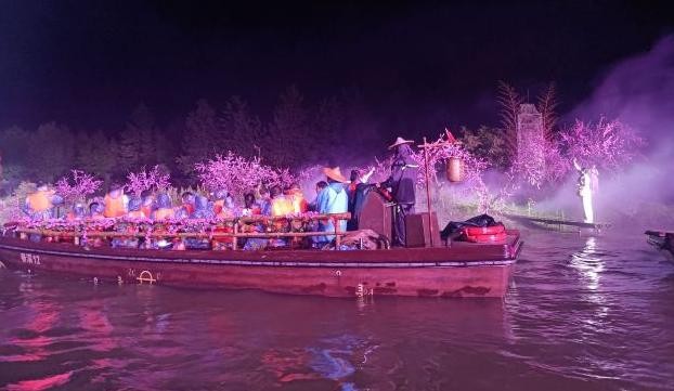 《桃花源记》大型山水实景演出:梦幻演绎陶渊明千古文章,让观众泛舟溪上,感受大型溪流漫游实景演出《桃花源记》。十余个演区星落分布秦溪两岸:从“武陵渔人”张网捕鱼的劳作,到“牧童短笛”悠远的牧歌;从“洗衣对歌”乡间生活,到“农耕画卷”的丰收景象;从“村舍夜话”乡野趣事,到“水上婚礼”的奇特婚俗;从“私塾童趣”的玩闹学堂,到“桃花源记”的众人合诵;从“林泉沐浴”的少女清纯,到“落英缤纷”的壮美画面。非常值得一看。