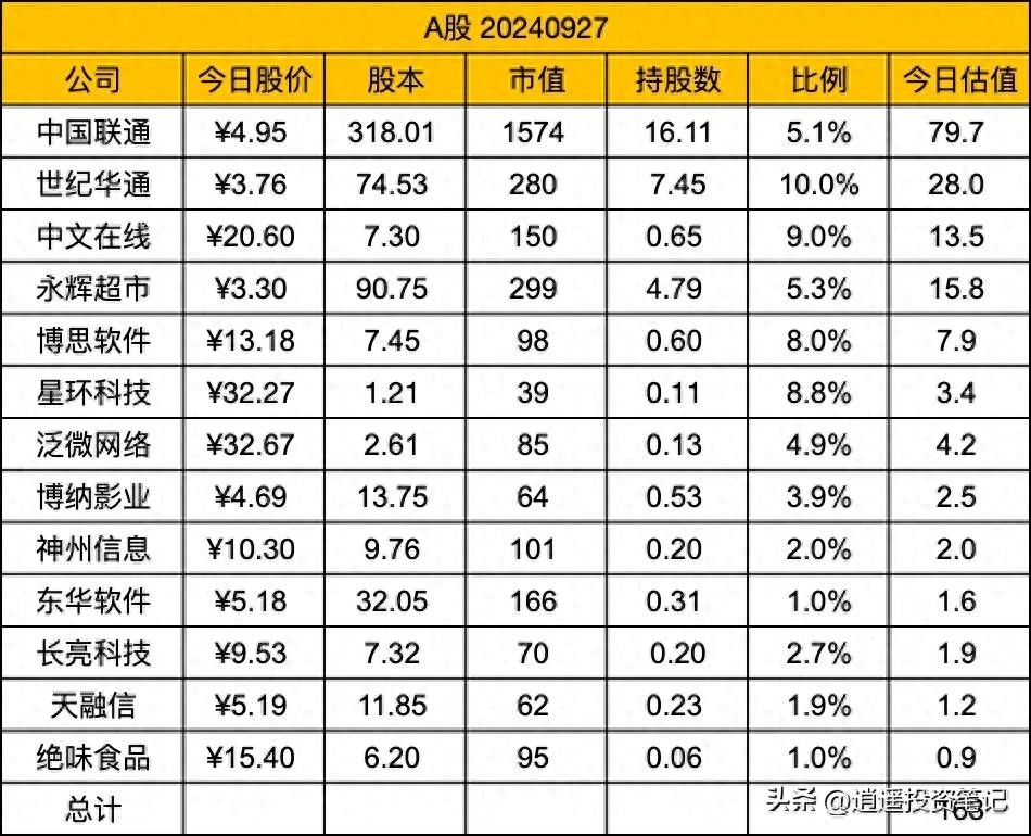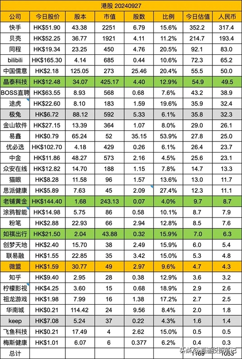 2、股价和市值数据,统计于2024年9月27日12:00。