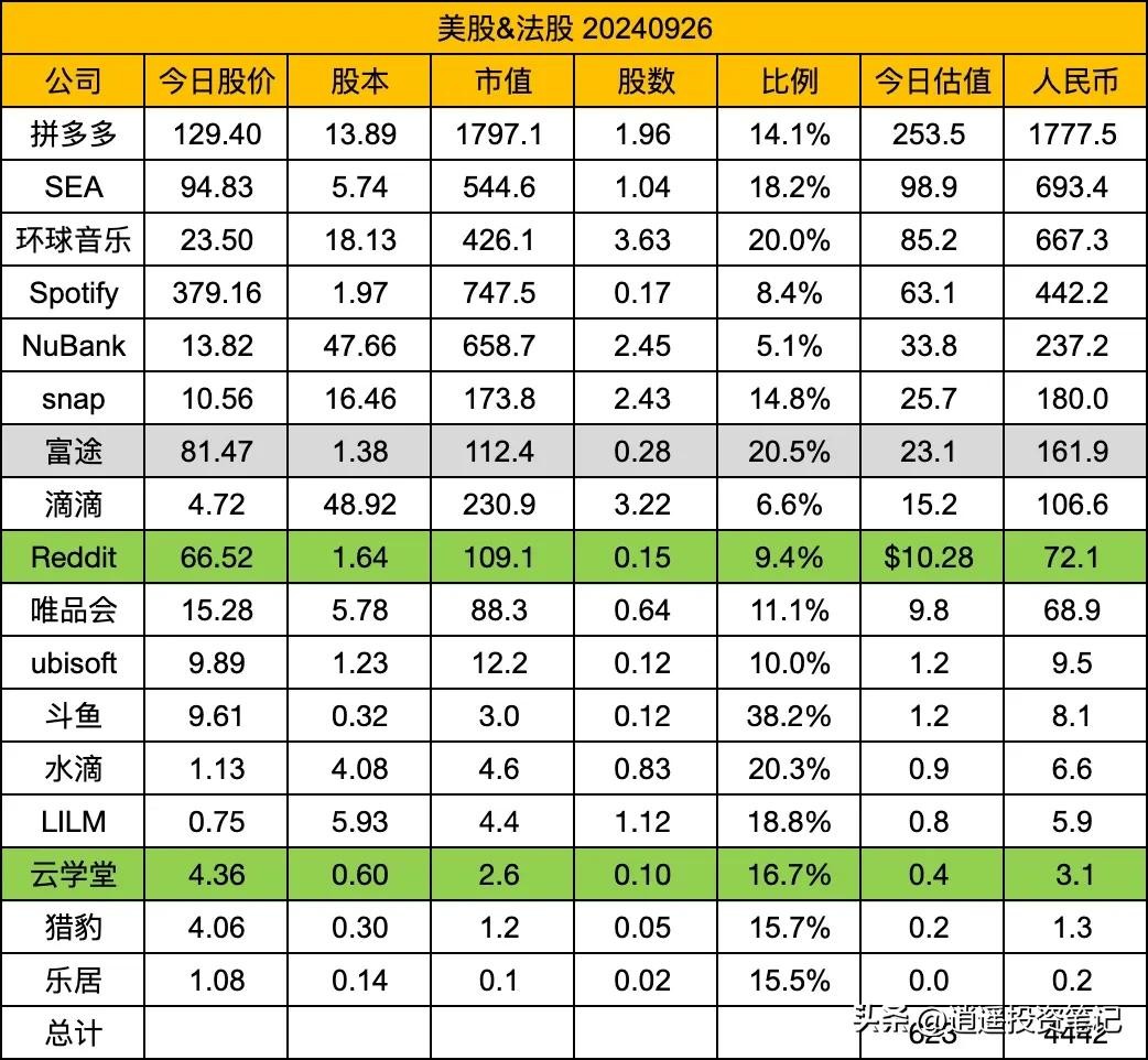 目前腾讯美股持有15家公司,法国交易所持有2家公司(环球音乐和育碧),持仓总市值4457亿人民币,去年底持仓公司数为15家,持仓市值为4750亿。