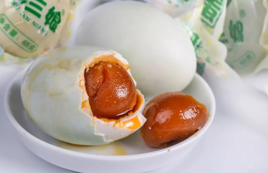 腌制期一过,把海鸭蛋上的红泥清洗干净,再次进行分拣,根据海鸭蛋的不同品质、大小分类装入真空包装,然后再进行高温烘烤及杀菌。