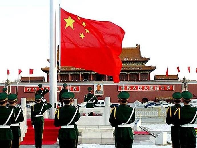 每周一举行升旗仪式,全体员工抬头看向大屏幕,跟随国歌《义勇军进行曲》音乐大声唱出来。