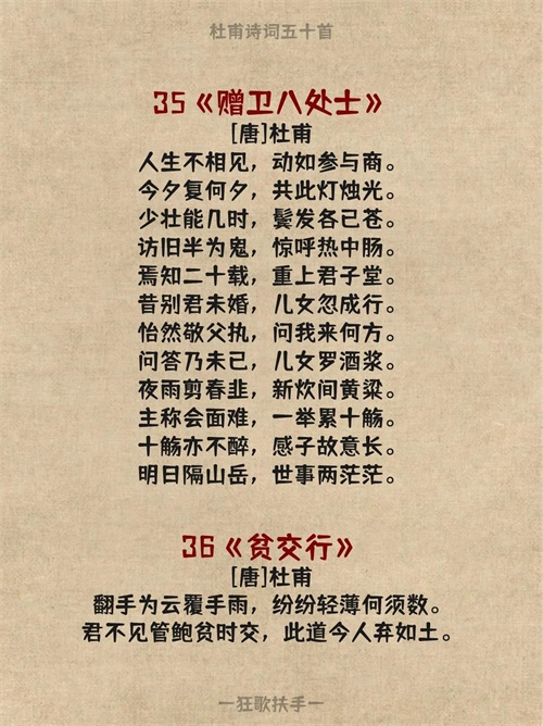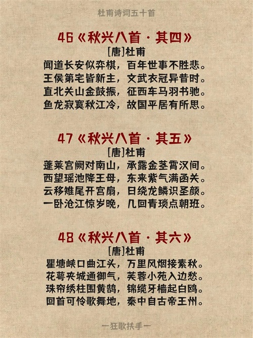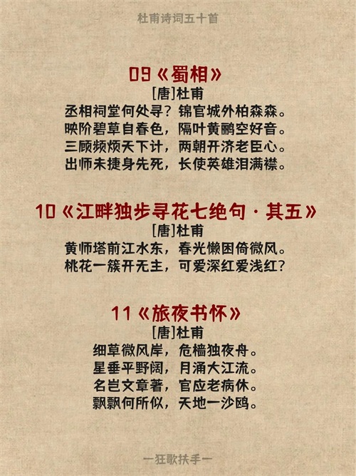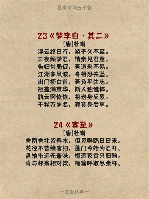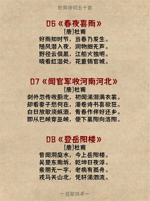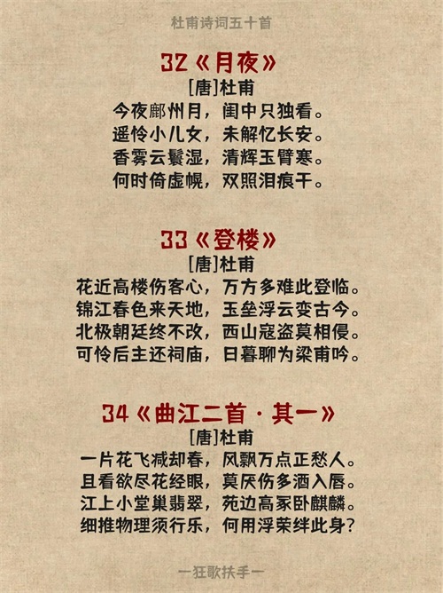 今天分享杜甫的五十首诗词: