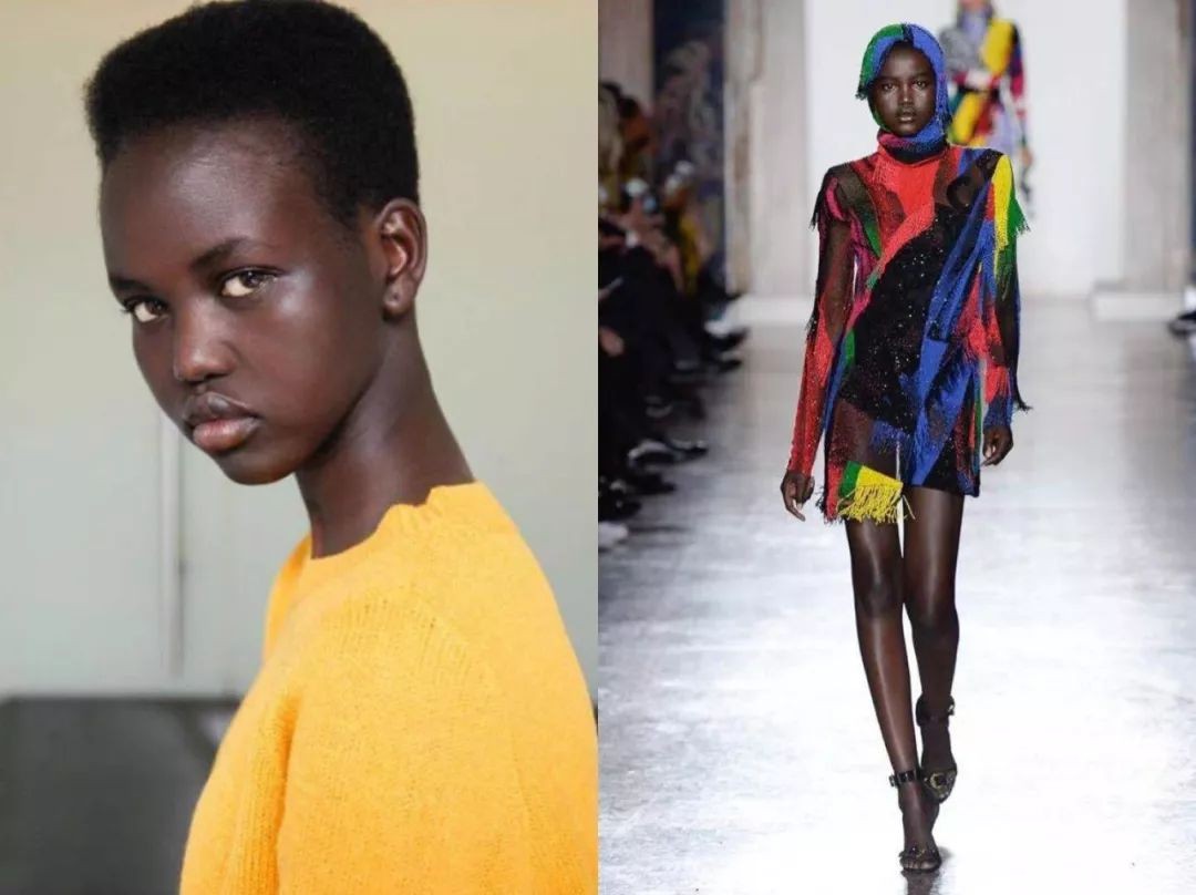 Adut Akech 是从南苏丹走出来的模特。为了逃难,从小和母亲离开了肯尼亚,成为澳大利亚的难民。她的首秀是 Saint Laurent S / S 2017,还曾为 Valentino 和 H&M 大秀开场。