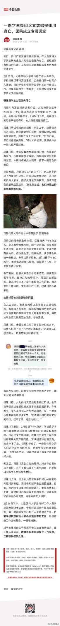 #医科大女研究生自杀 父亲发声##万能生活指南##大连医科大学回应女生出租屋内身亡#