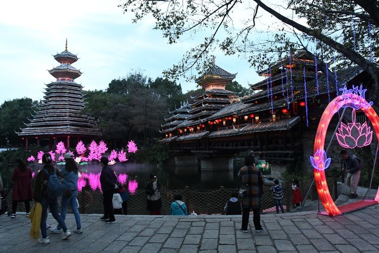 在【风雨桥】坐坐,感受侗族独特的长廊式的桥梁建筑。桥是铺设在溪流之上,专供过往行人歇息,避风避雨,因此得名“风雨桥”。又因侗族青年男女在此对歌、娱乐,故又称“花桥”。