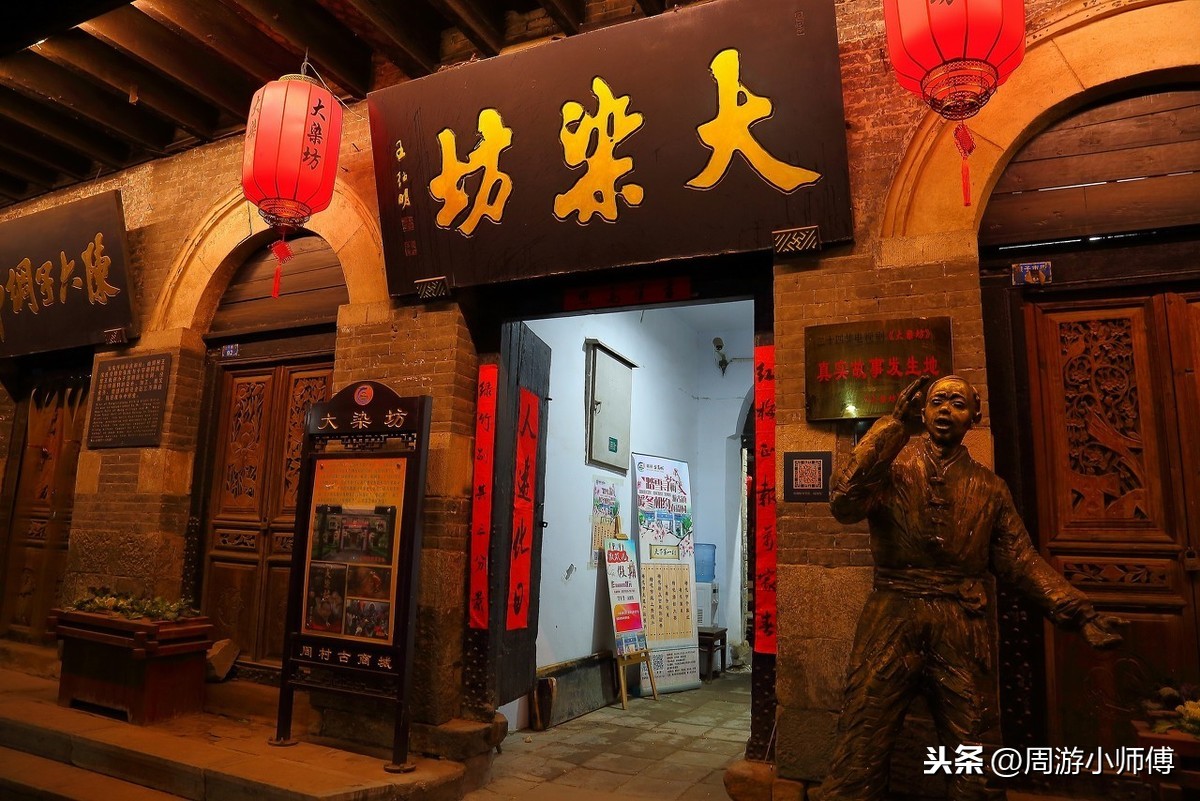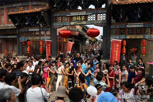 古商业城的主要街道又叫大街,是周村最大、最古老的一条商业街,始建于明永乐年间(约公元 1410 年),明崇祯九年(公元 1636 年),初步奠定了大街的雏形。它南起丝市街、银子市街交口,北至朔易门,长约两华里,北极阁拦腰横跨中间,把大街分为南北两段,现状保留的基本为南段,全长400米