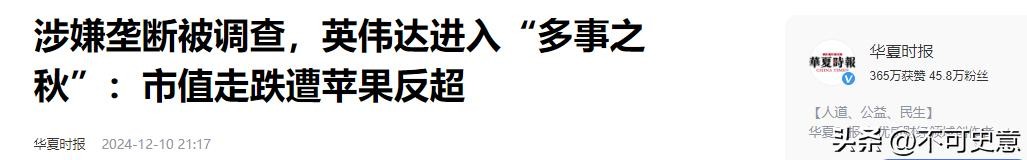华夏时报——《涉嫌垄断被调查,英伟达进入“多事之秋”:市值走跌遭苹果反超》2024-12-10
