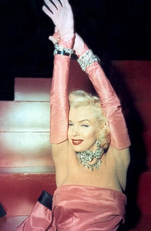 玛丽莲梦露是“绅士喜欢金发女郎”中的终极诱惑者,她演唱了“钻石是女孩最好的朋友”。在 1953 年电影的音乐剧中,这位令人惊叹的小明星身穿由威廉·特拉维拉设计的无肩带粉色缎面礼服。她用她标志性的红唇完成了令人难忘的造型,当然,钻石从她的脖子和手腕上滴落。