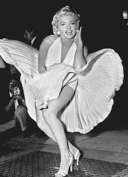 说出一张更具标志性的玛丽莲梦露照片……在 1955 年的《七年之痒》中,玛丽莲的角色穿着这件由服装设计师威廉·特拉维拉 (William Travilla) 设计的白色褶裥露背连衣裙,将原本可能令人尴尬的衣橱故障变成了完美的电影定义时刻。