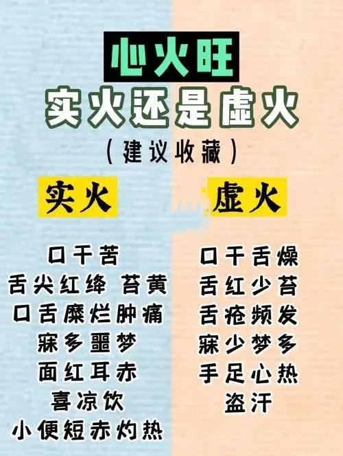心火炽盛者,烦躁失眠,甚则神昏妄笑;肝火偏亢者,目赤多膨,甚则头痛剧烈;脾火内灼者,消渴善饥,甚则大便干燥;肺叶火灼者,鼻燥喉痛,甚则咳血;肾火内盛者,小便热赤,甚则溲血,此皆五脏有火的见症,与五志之火病理相似,而不全同,临床诊治,当于鉴别。