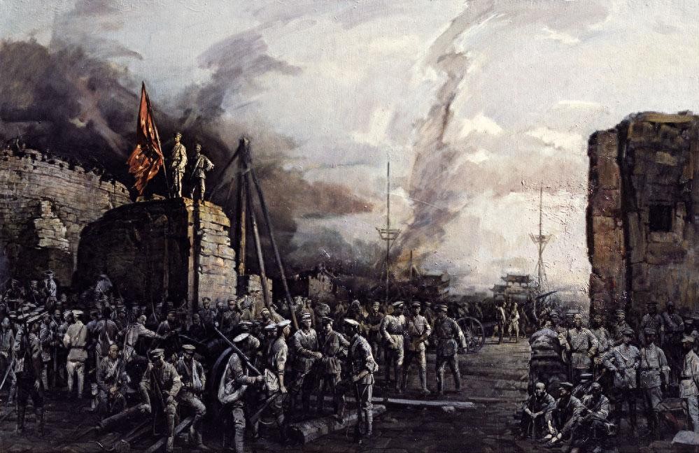 10月9日,革命党人在汉口俄租界策划起义时不慎泄露机密,导致起义计划提前暴露。情急之下,革命党人决定立即行动,于10月10日晚发动起义。当晚,武昌城内的新军士兵们在熊秉坤、金兆龙等人的带领下,向楚望台军械库发起进攻,成功夺取了武器弹药。