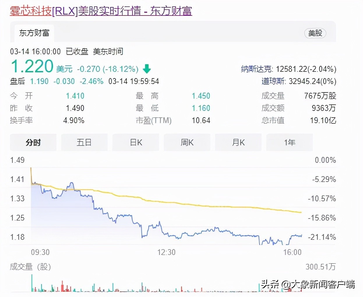 股市:雾芯科技美股股价腰斩 市场预期相对悲观