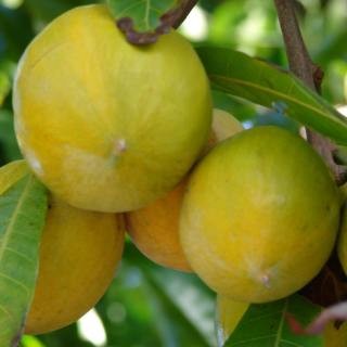 蛋黄果,又名仙桃,山榄科蛋黄果属多年生植物,树体高约6m,单叶互生,叶片纸质,狭椭圆形,花小白色,聚生于叶腋。