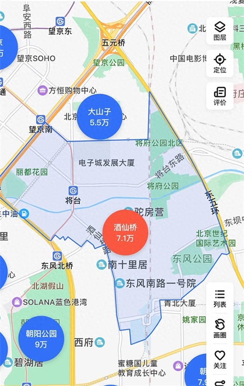 从地理位置来看,酒仙桥的区位定位与望京有相似之处,