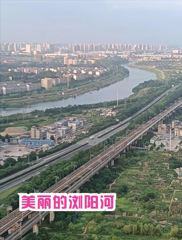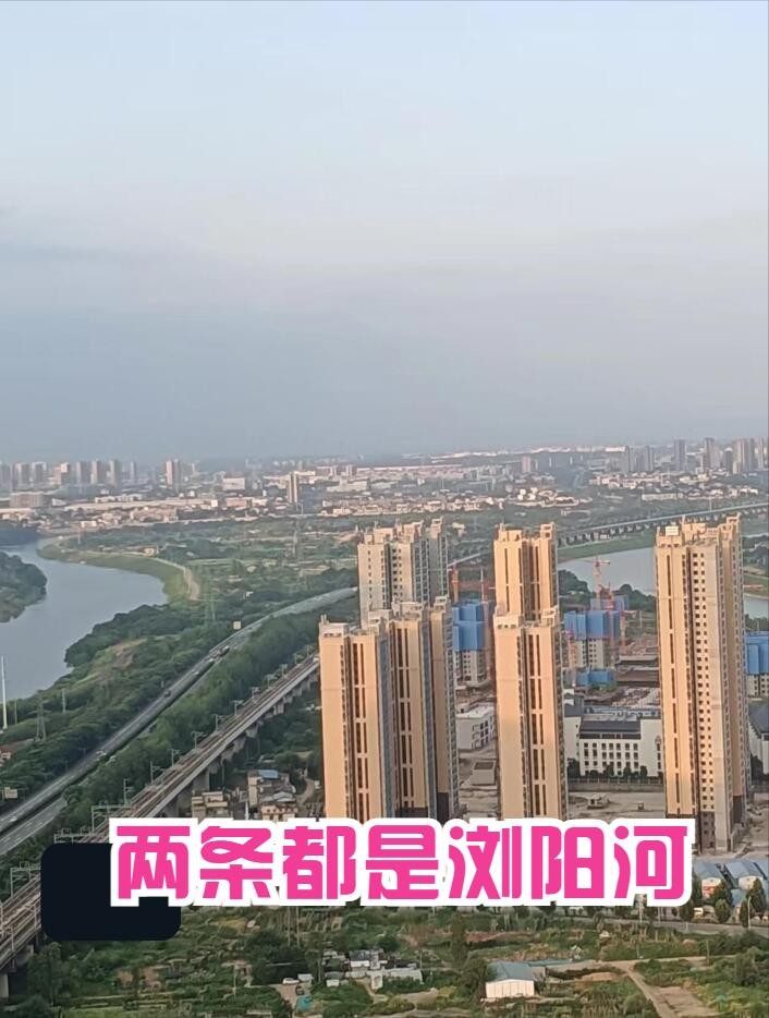 为了看得更清楚,我们爬上了附近的高楼,站在40多层建筑物的楼顶上再来看浏阳河,应该是一种不一样的感受吧。