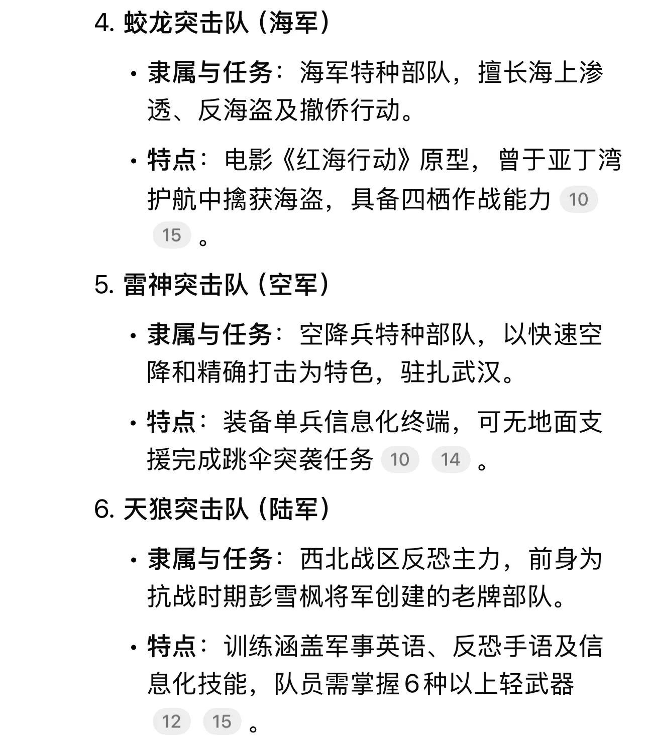 Deepseek列出我国十大特种部队排名,你都知道吗?