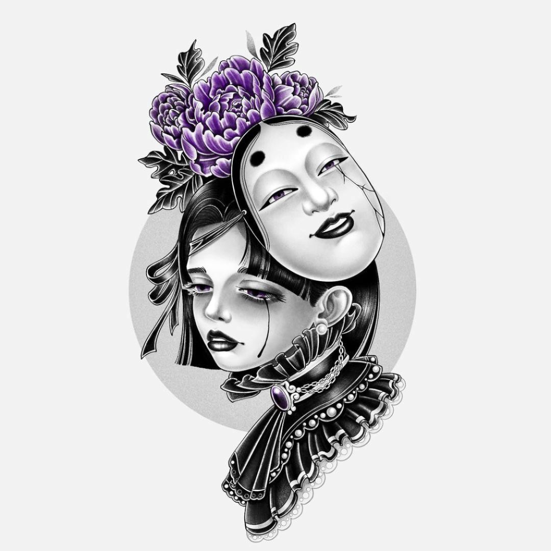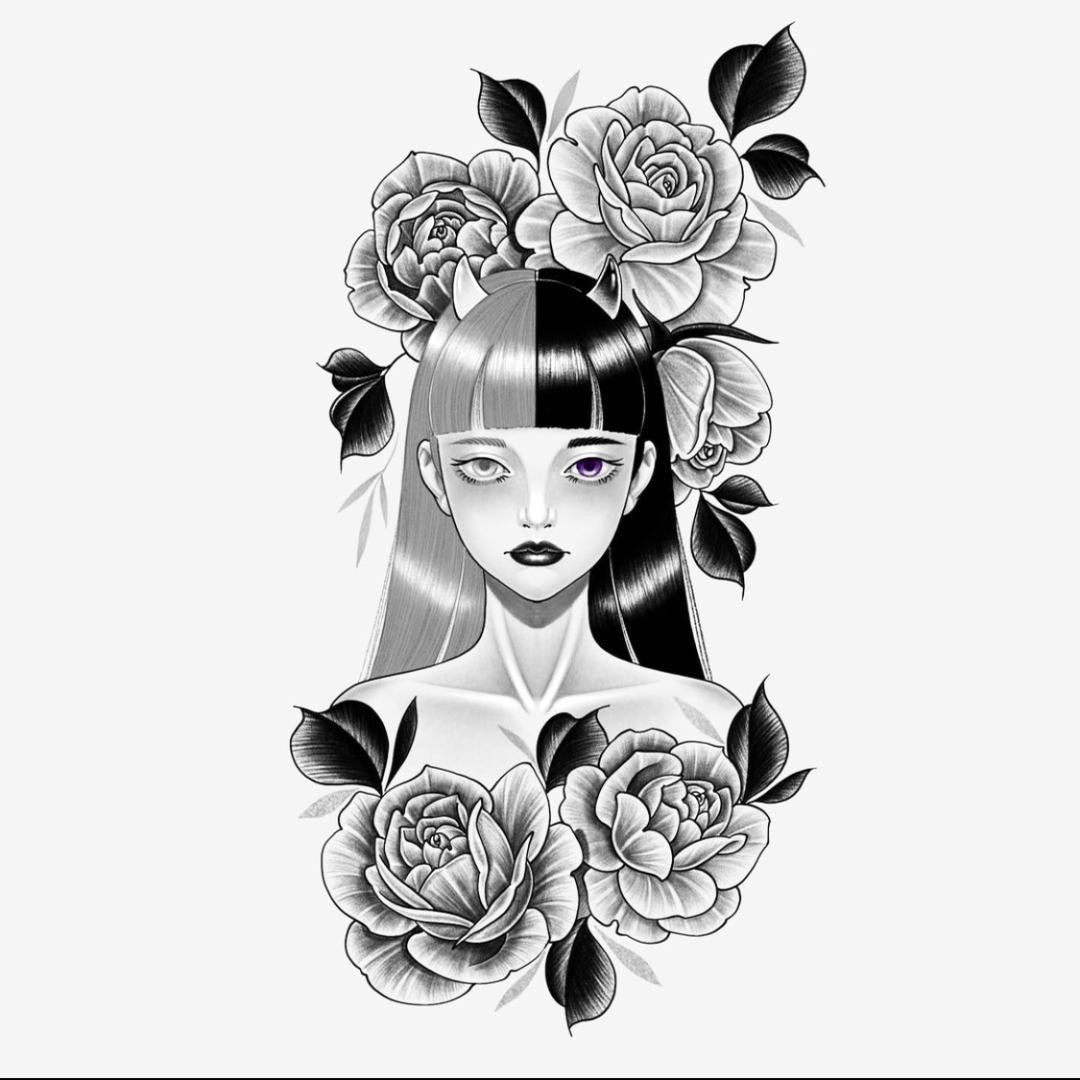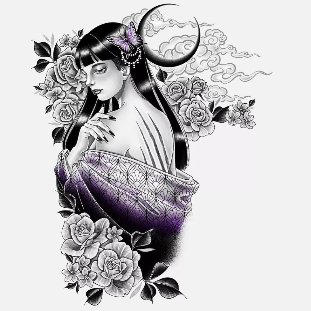 艺伎丨最新暗黑艺伎 首尔-tattooer_iryeong 艺伎纹身手稿 遮盖手稿