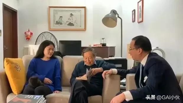 从公开的图片中可以看到,杨振宁先生的客厅并不豪华,反而显得朴素简单。这里没有过多的装饰,只有几个相框画和一些宠物挂件,展现出平凡家庭的氛围。杨先生穿着休闲的衣服,坐在沙发上与友人谈笑风生。而翁帆女士则静静地坐在丈夫身旁,穿着亮蓝色衣服,散发出优雅的气质。