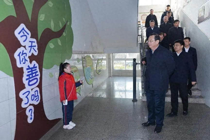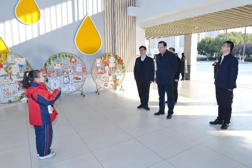 调研组一行首先来到高邮市慈善文化教育基地—秦邮实验小学,调研高邮镇慈善文化校园建设情况。在“善阅吧”“善雅堂”“善芽驿”等慈善文化场馆,陈扬、田醒民、李伟、徐永宝等领导被该校小学生讲解员声情并茂、娴熟活泼的讲解深深吸引,对该校将慈善文化嵌入校园的每一个角落、使学生随处接受慈善文化熏陶的创意大为赞赏,希望学校继续探索创新,将慈善文化与德育工作、校园文化建设深度融合,培养更多具有社会责任感和奉献精神的时代新人。