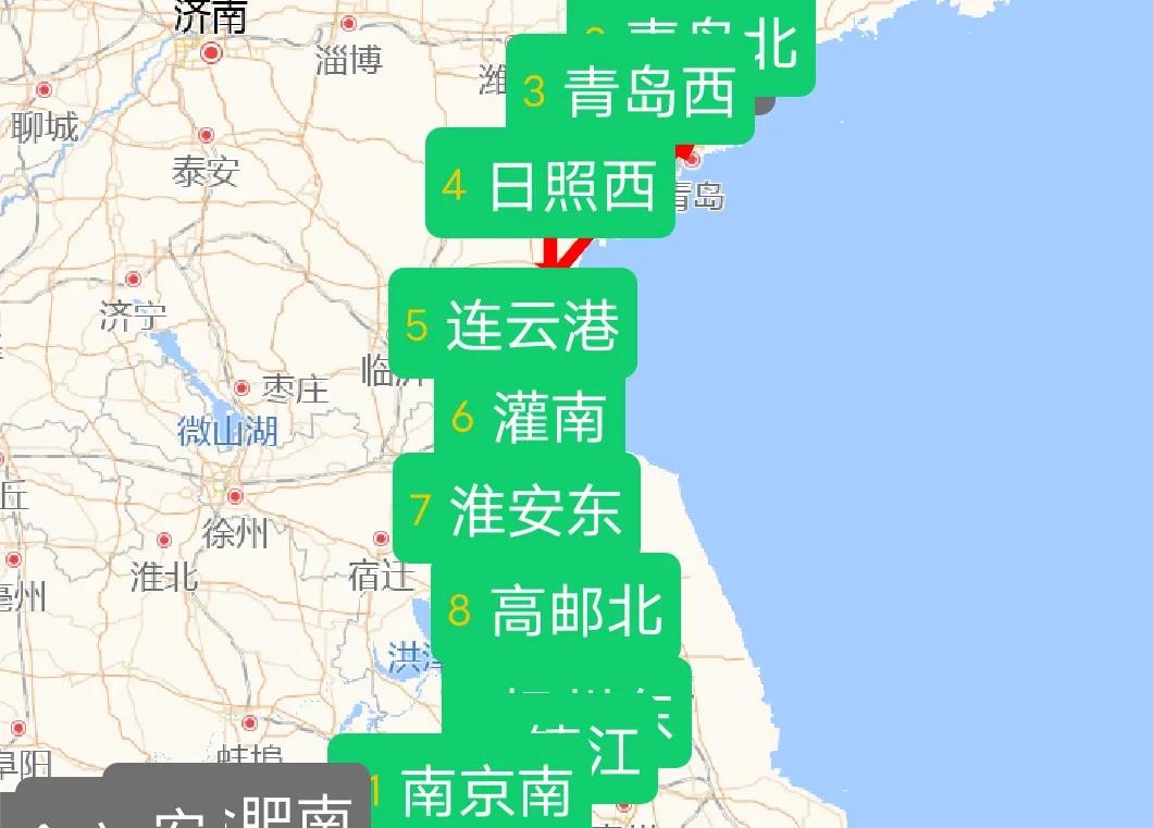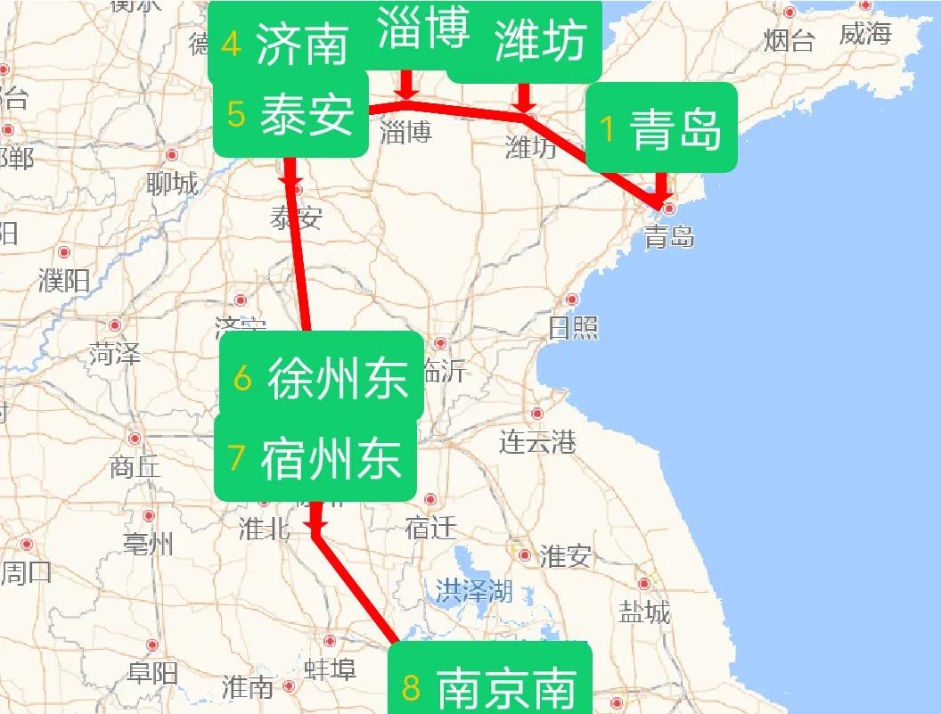 青岛至南京高铁,沿青盐线南下优势明显,绕行济南时间长票价贵