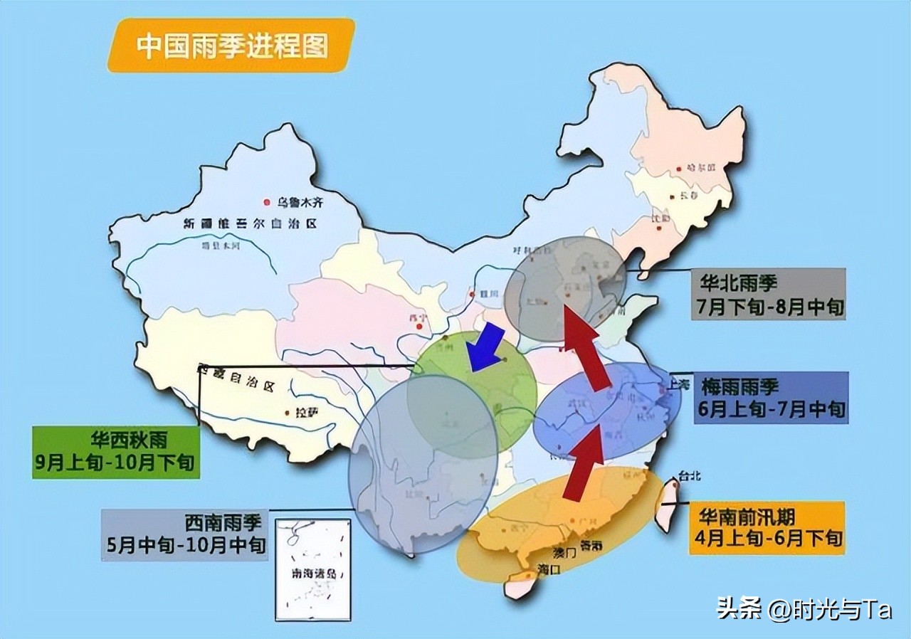 我国的梅雨主要分布在江淮流域,西起湖北宜昌,东至华东沿海,涉及上海、江苏、安徽、浙江、江西、湖北、湖南等地区。