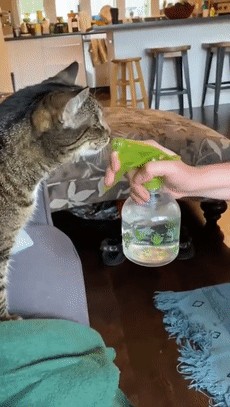 通常来说,猫猫都会比较怕水,所以我们可以准备一个喷水壶,猫猫犯错误的时候可以喷他一下。这样猫猫就和将被喷水和做错事联系在一起,形成条件反射,这样就不太会再犯了。但是需要注意的是,对于胆小的猫猫来说,喷水也可能造成它们应激,因此大家还是需要考虑到自家猫猫的自身情况,酌情采用。