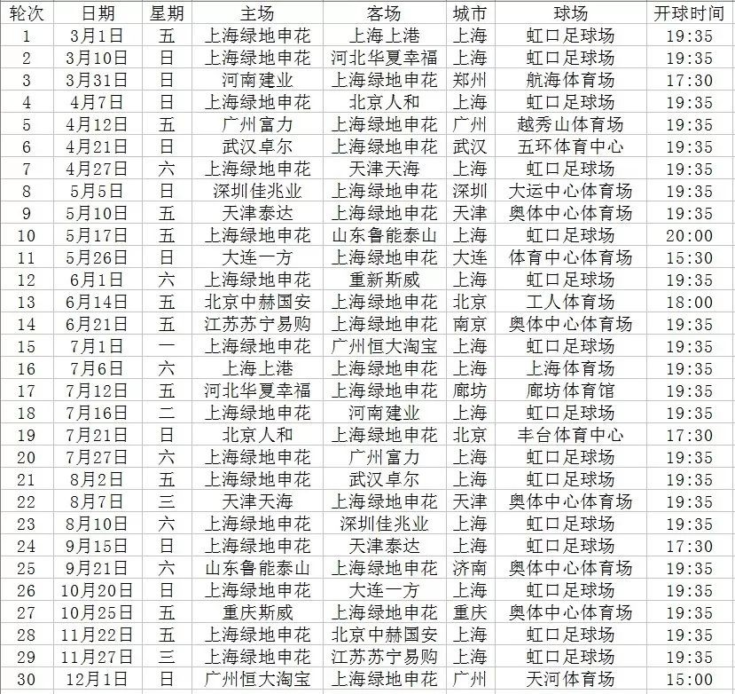 接下来,就请大家收藏好这份小体为大家整理好的申花、上港赛程。