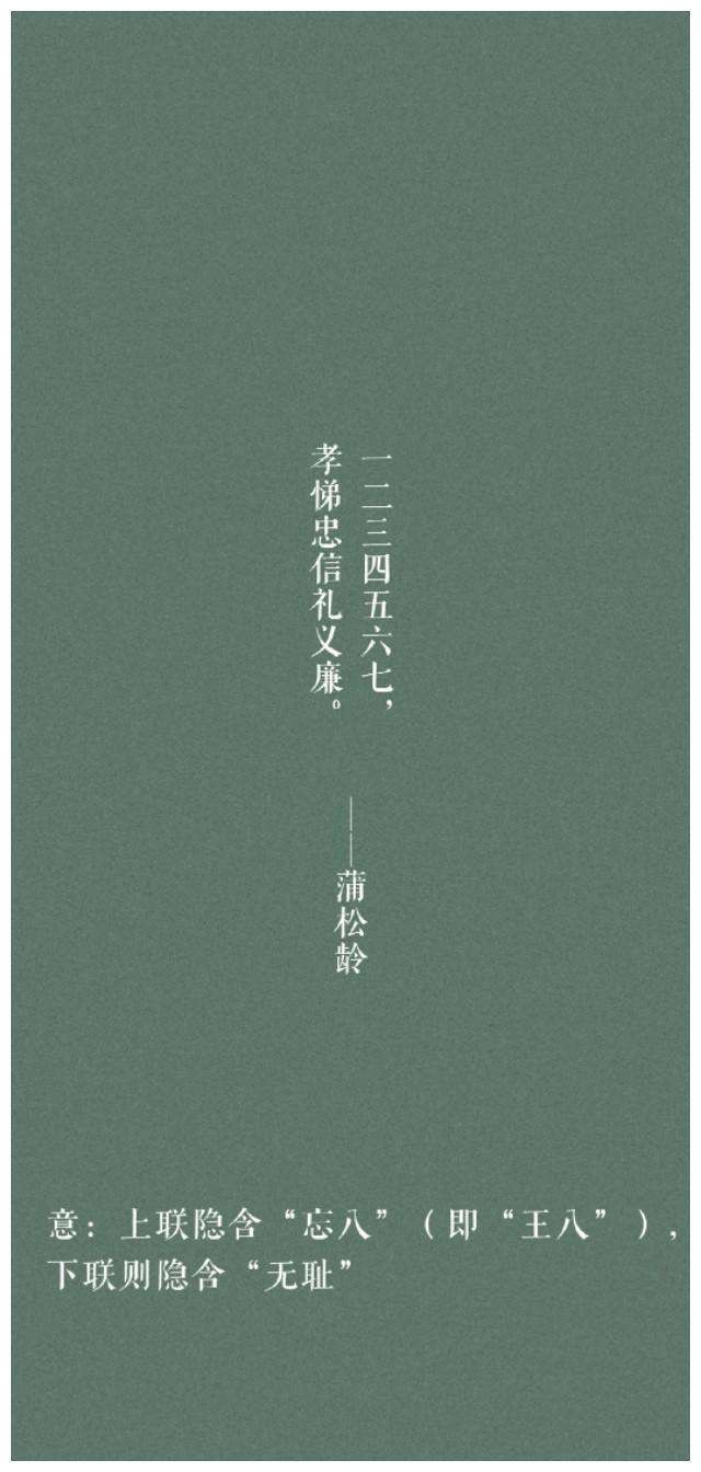 八,一貫横行霸道,坏事做尽,百姓敢怒不敢言,送他一个“王八”的“美称”。他想让蒲松龄给他新建的功德牌坊写副对联,蒲松龄正想治治这昏官,挥笔写下这副对联: