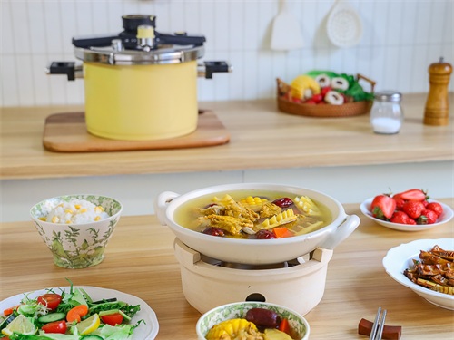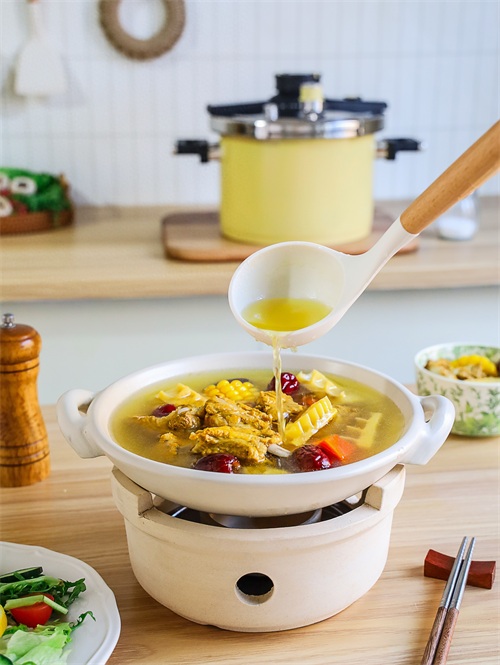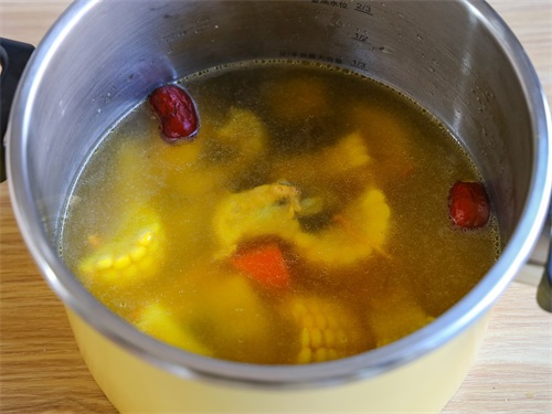 4.盖上锅盖,高压30分钟,烹制完成,调入食用盐,搅拌几下,出炉。