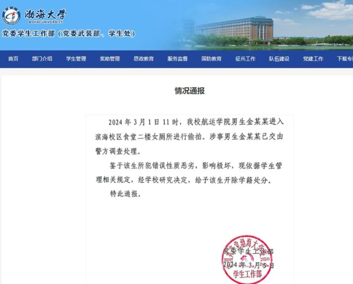 道德败坏!渤海大学通报男生进女厕所偷拍引热议
