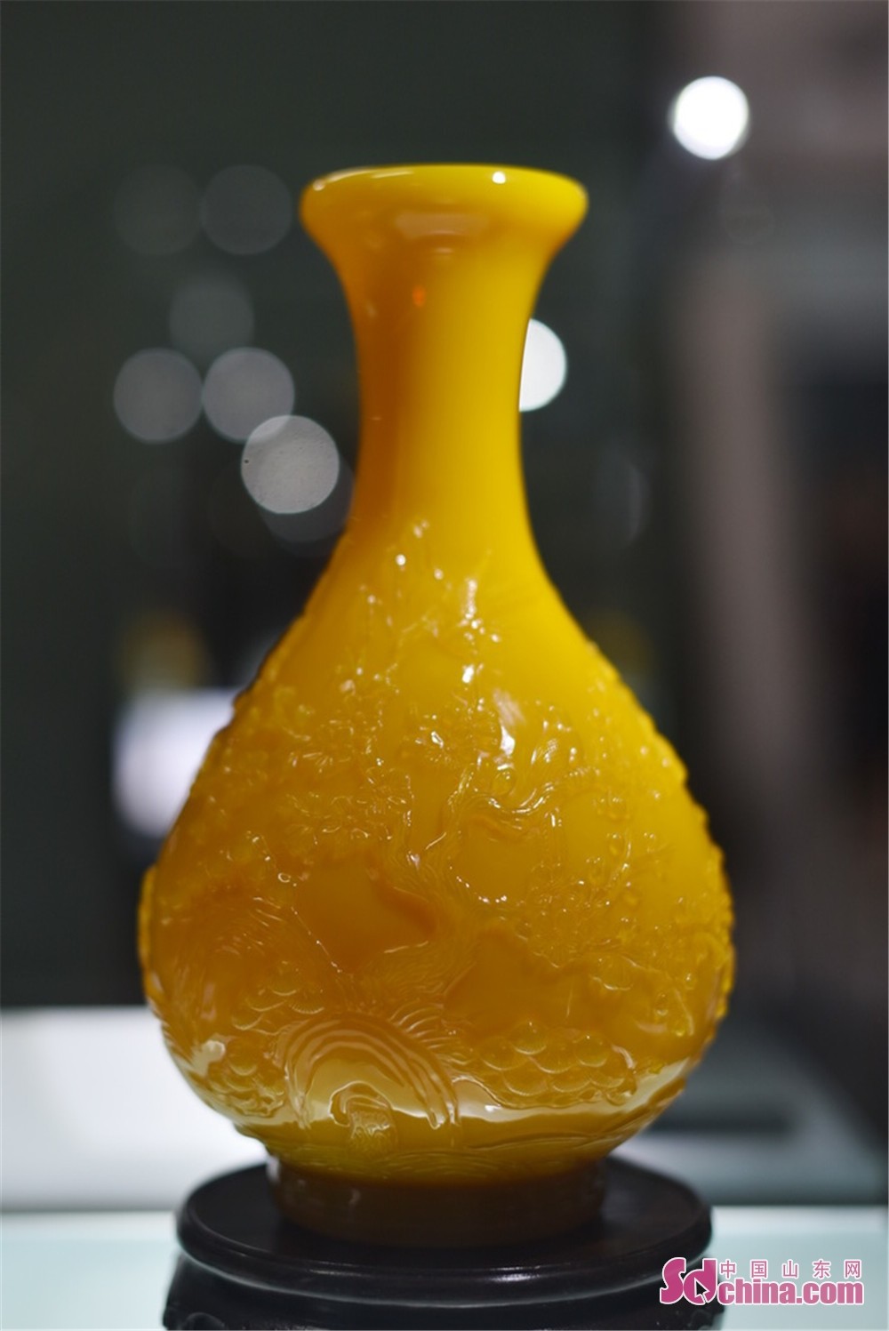 鸡油黄浮雕《玉壶春瓶》。