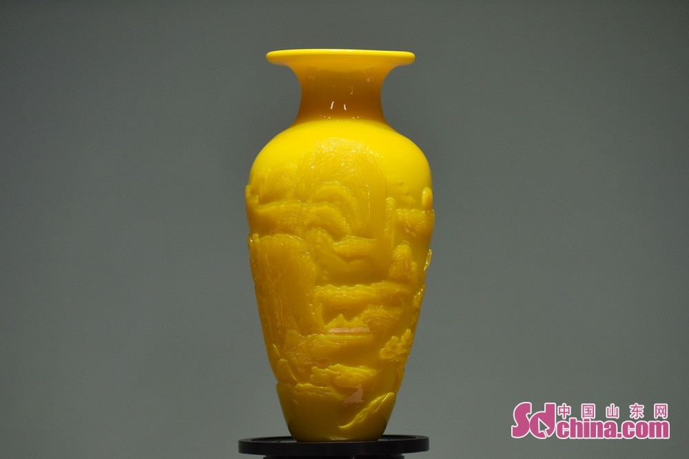 鸡油黄作品《泰山瓶》,被上合峰会选中参会。中国玻璃艺术大师孙云毅多年来潜心研究制作琉璃名贵色料,尤其是对鸡油黄的研制,对色泽、成分对比不断改进,从配料、配色到熔制、控温,坚持传统和科技相结合,使这一古老的艺术表现形式焕发青春活动力,其制作的鸡油黄作品成功申获国家发明专利,鸡肝石、鸡油黄琉璃烧制技艺成功入选为山东省第四批省级非物质文化遗产代表项目,其本人也被评为山东省名贵料器鸡油黄、鸡肝石非遗传承人。