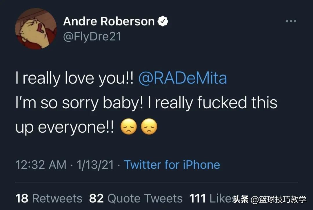 昨儿个,罗伯森也发布动态,向瑞秋道歉:“我真的很爱你!@RADeMita。我非常抱歉宝贝!我搞砸了一切,对不起各位!”