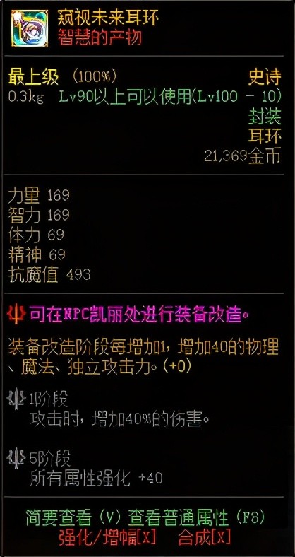 虽然智慧产物型史诗不能增幅/强化,可改造1阶段就能增加40%伤害,从面板属性来看也不至于便宜到几百万的身价,可细想之后就难怪这么便宜了,虽然改造1给了40%加成,可DNF中伤害稀释这种算法,导致很多数值越高的装备,反而越受冷落,尤其是现在大部分玩家依然处于4=1/2=1阶段,即使全传说玩家也不太会考虑,加上从100版本到现在,智慧产物虽然看着挺强,但如果达不到改5这样的完全体,根本发挥不出威力。