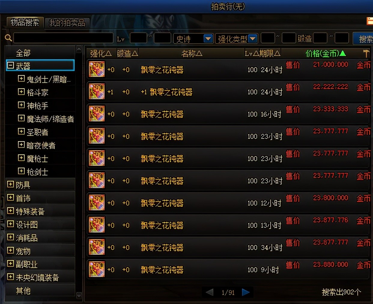 飘零系列武器,这个不用多做介绍,估计现在已经不少玩家买了,那么拍卖行战士的武器已经有了