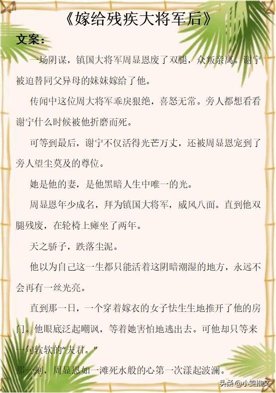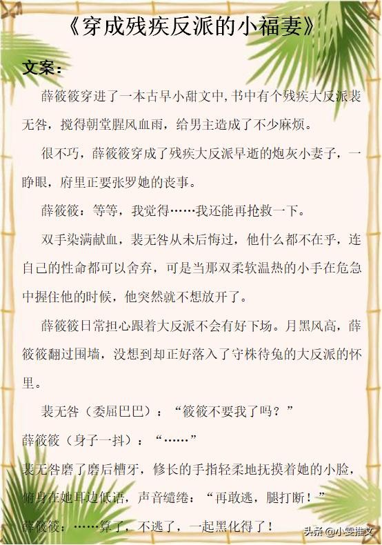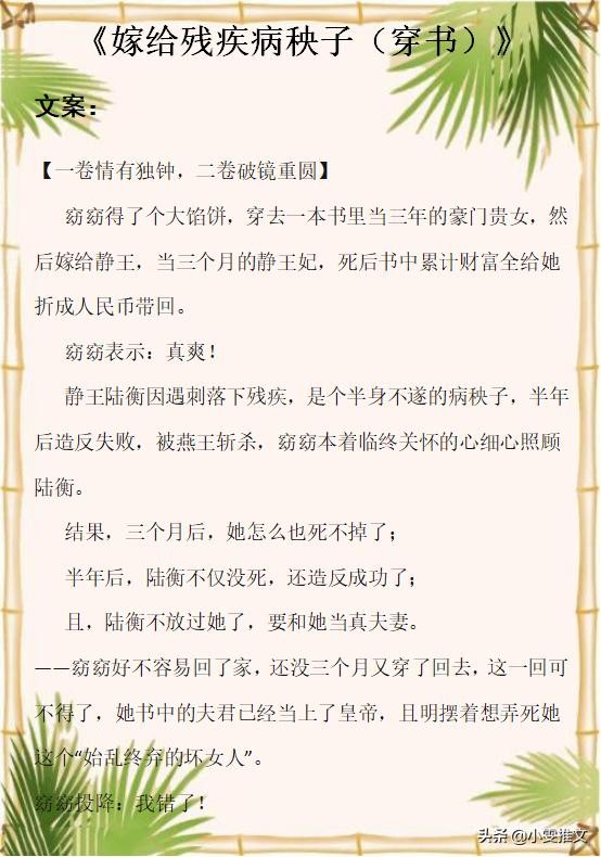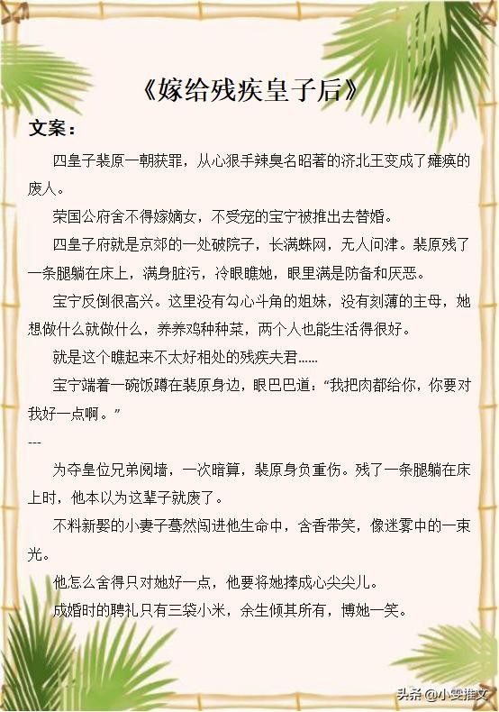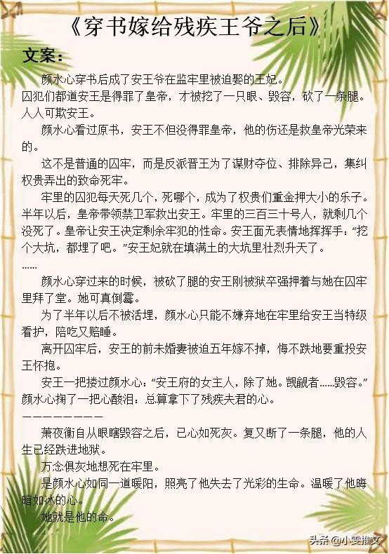 7本残疾文《嫁给残疾病秧子(穿书)》《穿书嫁给残疾王爷之后》