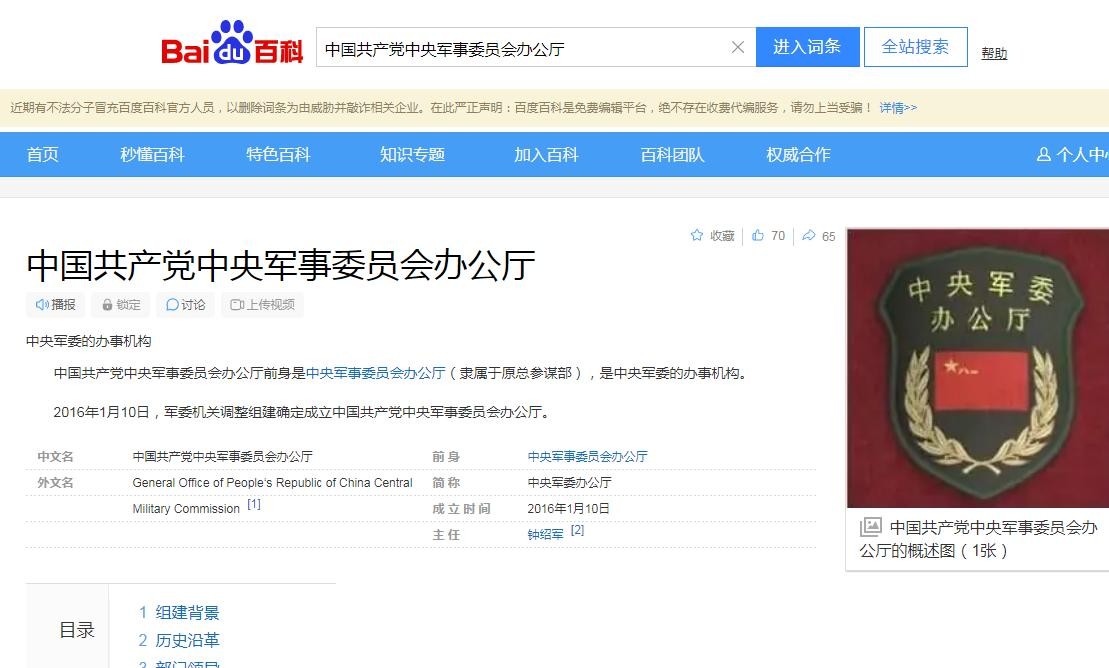 百度百科,中国共产党中央军事委员会办公厅