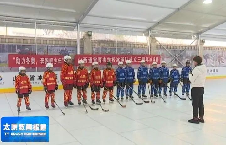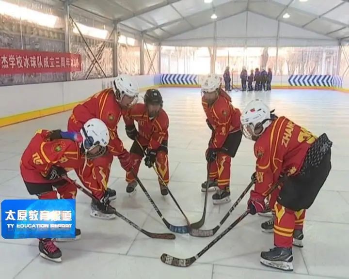 为了合作共建山西省冰球项目高水平运动队,学校已与山西省冰雪运动中心签署了战略合作协议,成立“冰球项目人才基地”。学校成立冰球队不仅是为了普及学生冰雪运动,也是为了更好地树立正确的青少年专项训练及发展理念,引导学生冰雪运动项目向科学、健康的方向发展。从引领学员学习冬奥会历史,学习冰雪知识,到走向冰场开展实践活动。