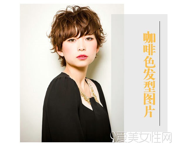 深栗色短卷发潮范十足,头发颜色十分衬肤色,卷发蓬松有灵动性。