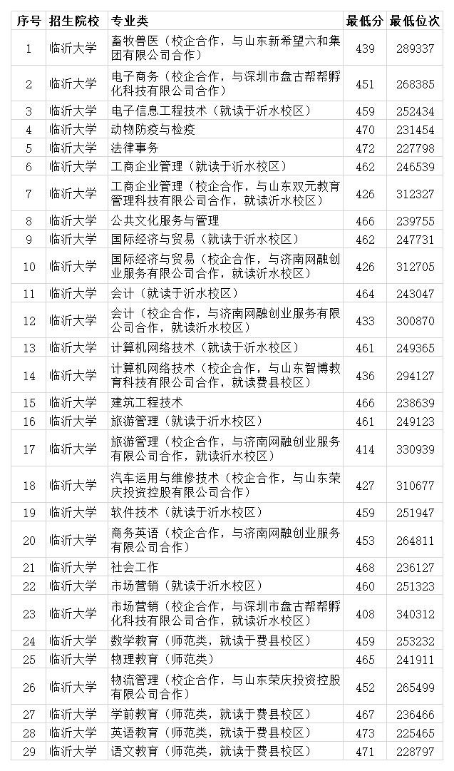 临沂大学还设置有艺术类专业、公费师范生招生计划,不过因为录取规则不同,这里就不再列出录取数据了,大家可以去学校官网查询。