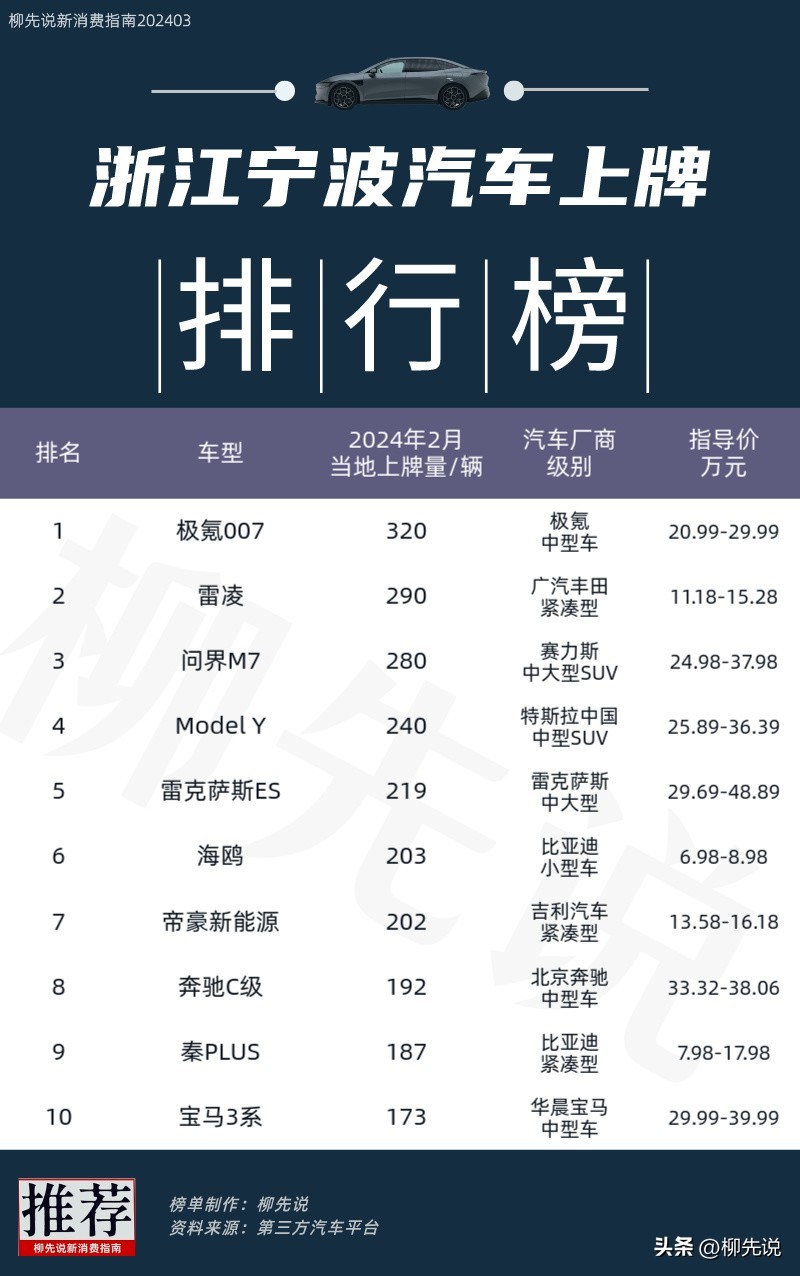 浙B新车上牌冠军!2024宁波受欢迎车型:海鸥第6,Model Y只排第4