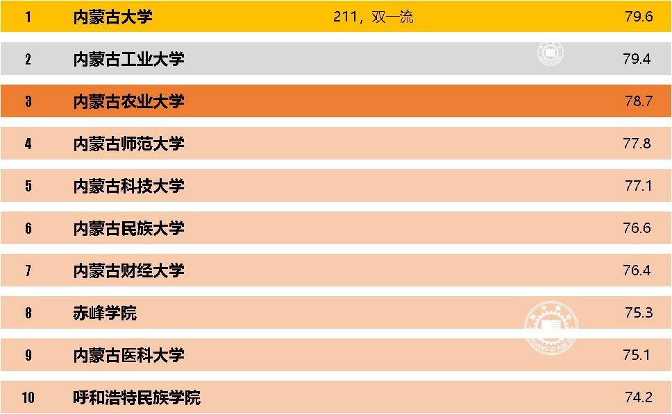 2023内蒙古综合实力最强的十所大学排行