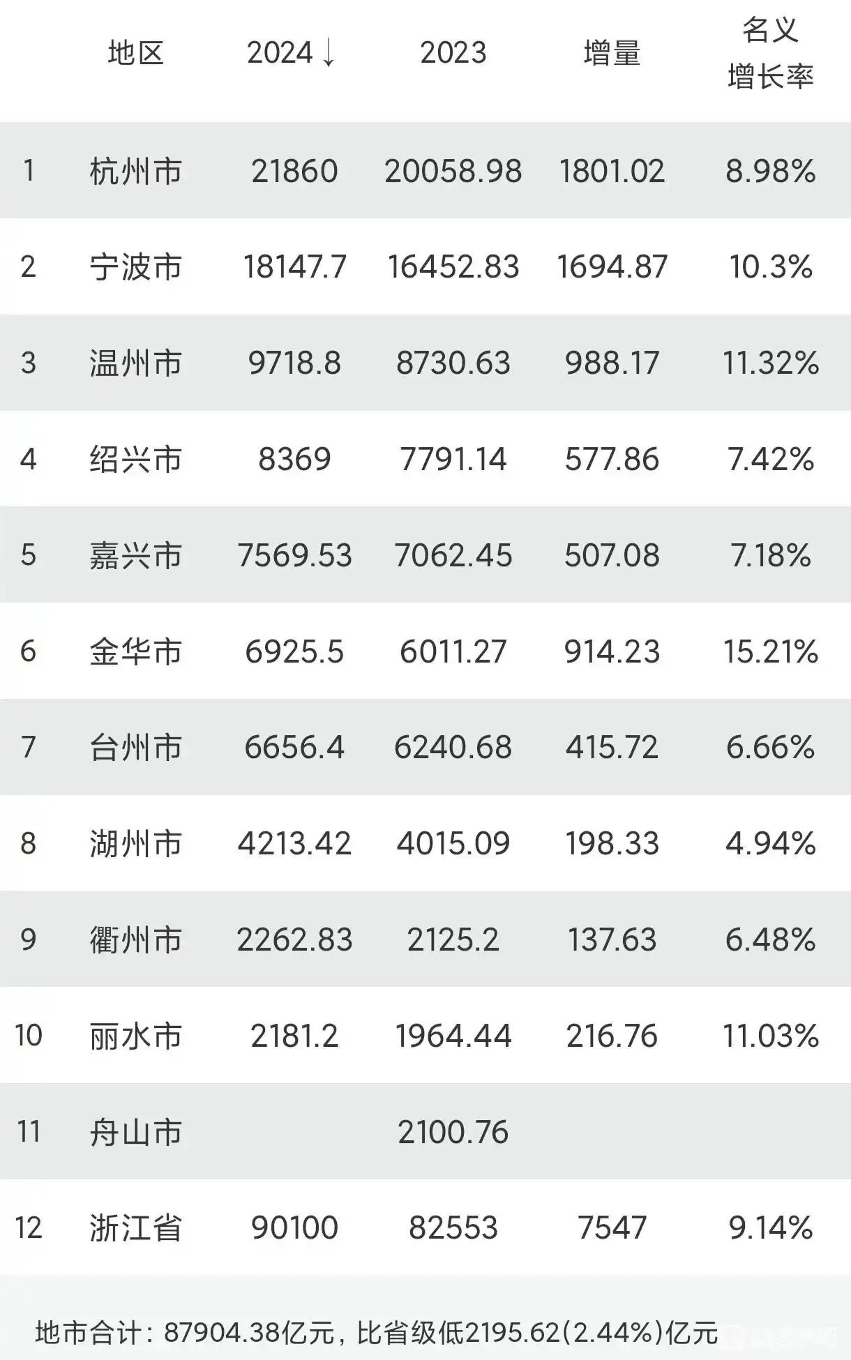 浙江各市2024年GDP出炉:温州接近一万亿、金华超台州