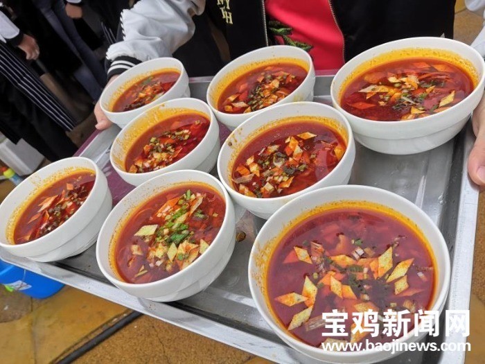当天的比赛现场,参赛者们精湛的厨艺和良好的精神风貌赢得了现场观众雷鸣般的掌声。一碗碗香气四溢的臊子面,一碟碟美味可口的擀面皮,不断“挑逗”着大家的味蕾,市民、游客热情高涨,从四面八方闻香而来,只为一饱眼福和口福。