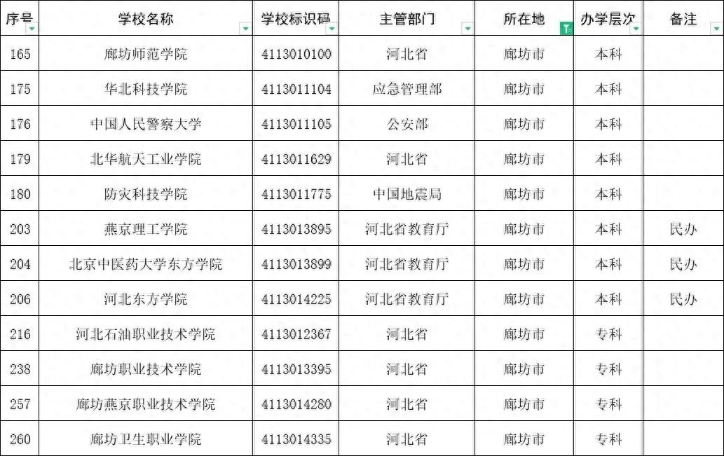 廊坊目前有12所高校