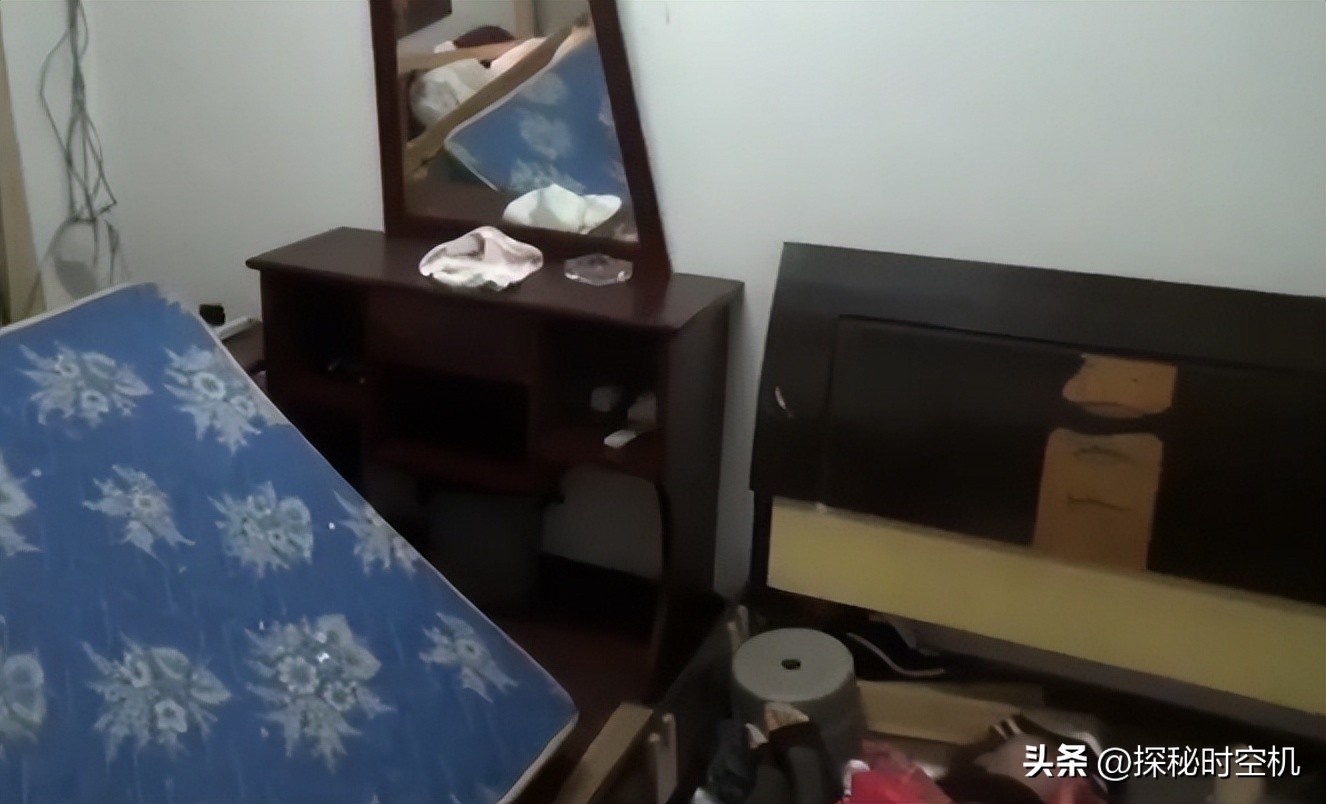 床铺上很凌乱,席梦思床垫似乎有被移动过的痕迹?