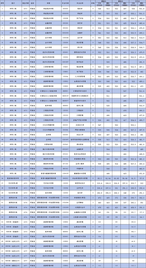 2023年财经类院校录取遇到了一些困难,但从该校公布录取结果看,部分专业还是取得了不错的录取成绩。比如,会计学专业的文科综合最高录取分 553 分,最低录取分 540 分,录取平均分 543.2 分,接近本科一批控制线;理科综合最高录取分 530 分,最低录取分 510 分,录取平均分 514.9 分,超过本科一批控制线。审计学、税收学、财政学、财务管理、汉语言文学等专业文科综合最低录取分均在 530 分以上;计算机科学与技术、审计学、税收学、财政学、软件工程等专业理科综合最低录取分均在 500 分上下。