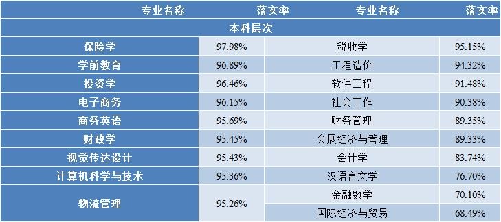 上报数据显示,除了保险学、金融数学外,所有本科专业毕业生人数都在100人以上,会计学更是有279名毕业生。专业人数多少,很大程度上就是专业热度的反映。