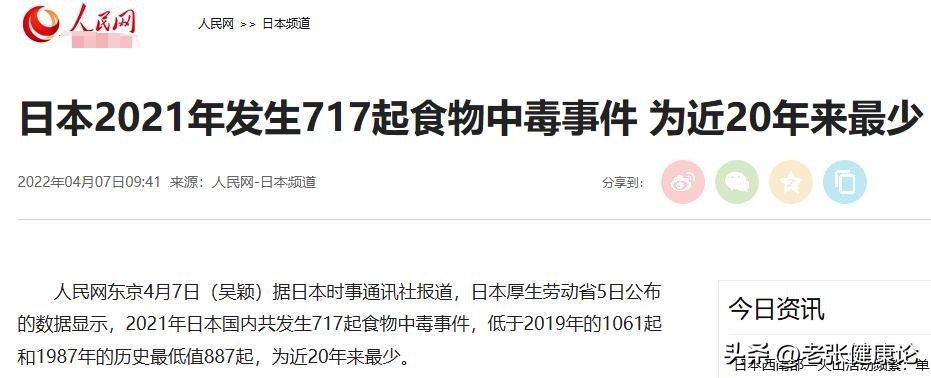 日本2021年发生717起食物中毒事件 为近20年来最少,2022年04月07日09:41 来源:人民网-日本频道