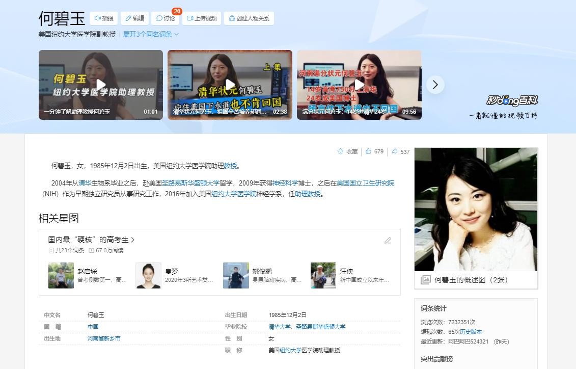 被清华北大抢着要,何碧玉最终选择了清华大学的生物学专业,凭借超凡的大脑与刻苦努力,一路攻读到美国华盛顿大学的博士生。